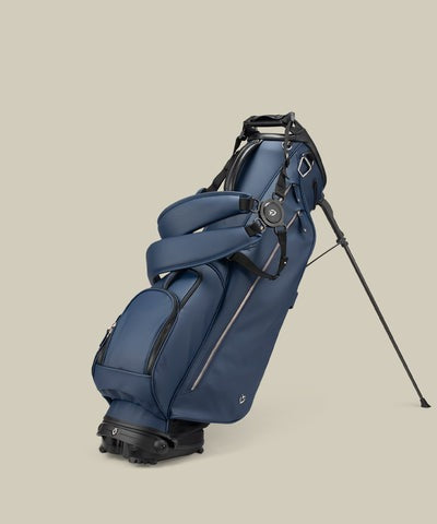 Stand bags are designed for easy carrying and walking the course. They’re lighter and feature dual straps for comfort. Cart bags are larger, built to sit securely on a trolley, and usually offer more storage space. Vessel’s range of stand bags combines both convenience and premium performance.