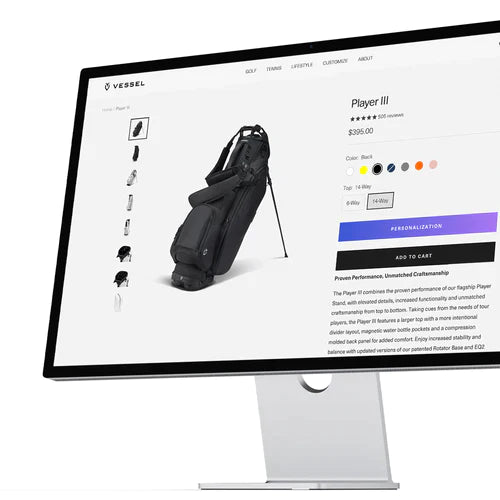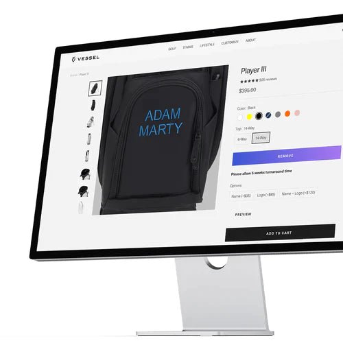 Pick a golf bag and color from our in-line collection. Click the ‘Personalization’ button to start the process.