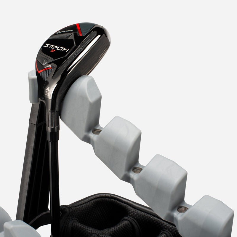 - Magnetic Slots | A small magnet in each slot ‘locks’ clubs into place.