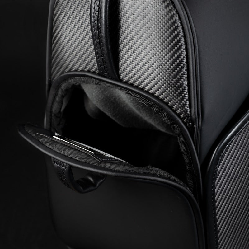 This specially crafted Lux Pro Carbon Cart bag is part of our top-of-the-line, Carbon Collection — an embodiment of innovation and craftsmanship. In collaboration with Carbitex, a pioneer and leader in flexible carbon fiber technology, we’ve pushed the boundaries to create something truly extraordinary. The result is a material that is strikingly elegant, remarkably durable and effortlessly functional.