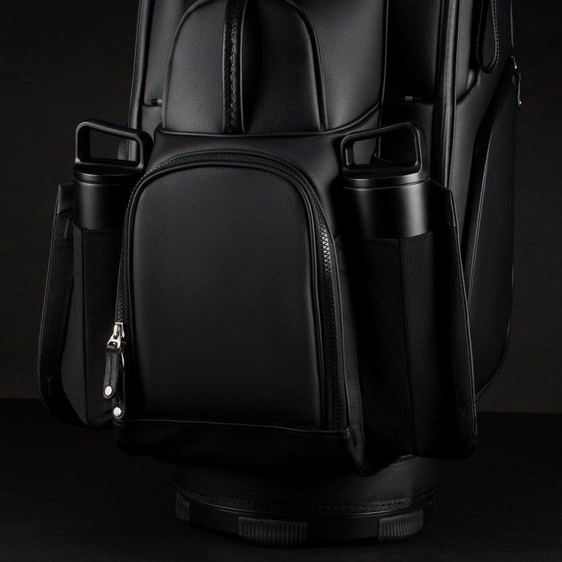 Refreshments, perfected. Dual bottle sleeves plus an insulated cooler pocket (with drainage) keep your drinks cold from the first tee to the 18th green.