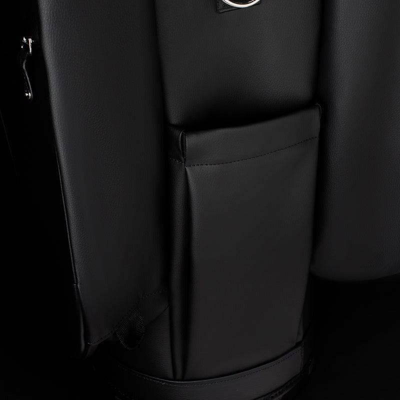 A discreet battery pouch accommodates electric trolley packs while concealing the single strap when not in use. A refined solution to keep power — and order — elegantly tucked away.