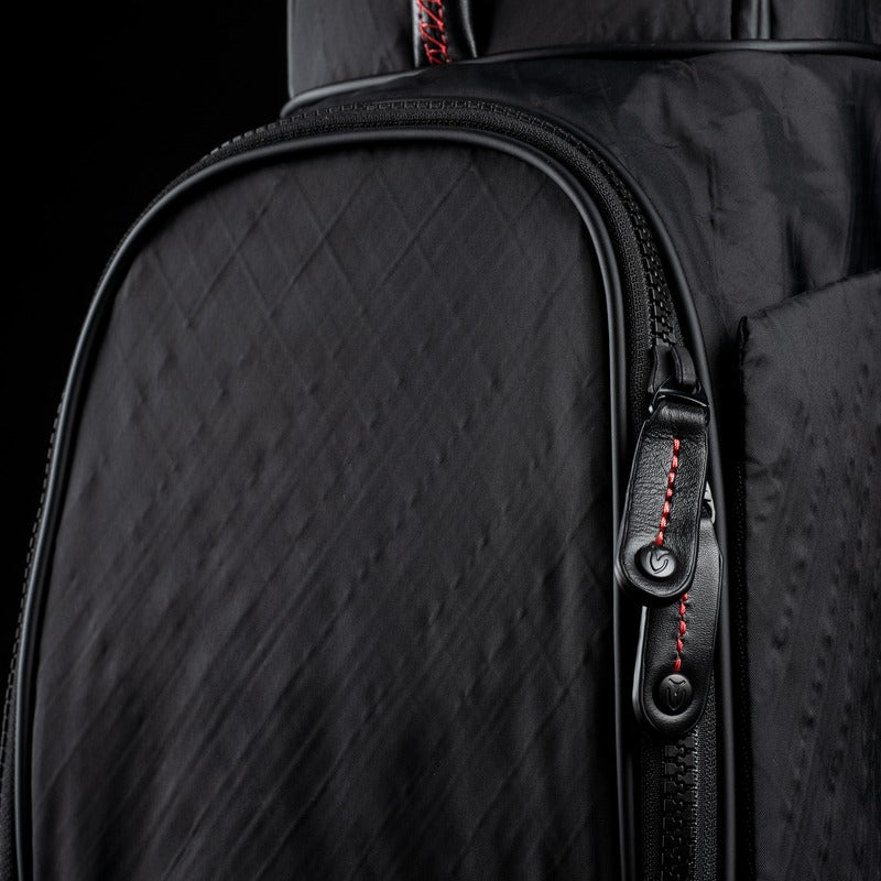 An ultra-lightweight nylon material backed with an x-pattern of ripstop backing for added durability. With its unique 'diamond' pattern and striking red accents, our DXR colorway gives our classic bags a one-of-a-kind look.