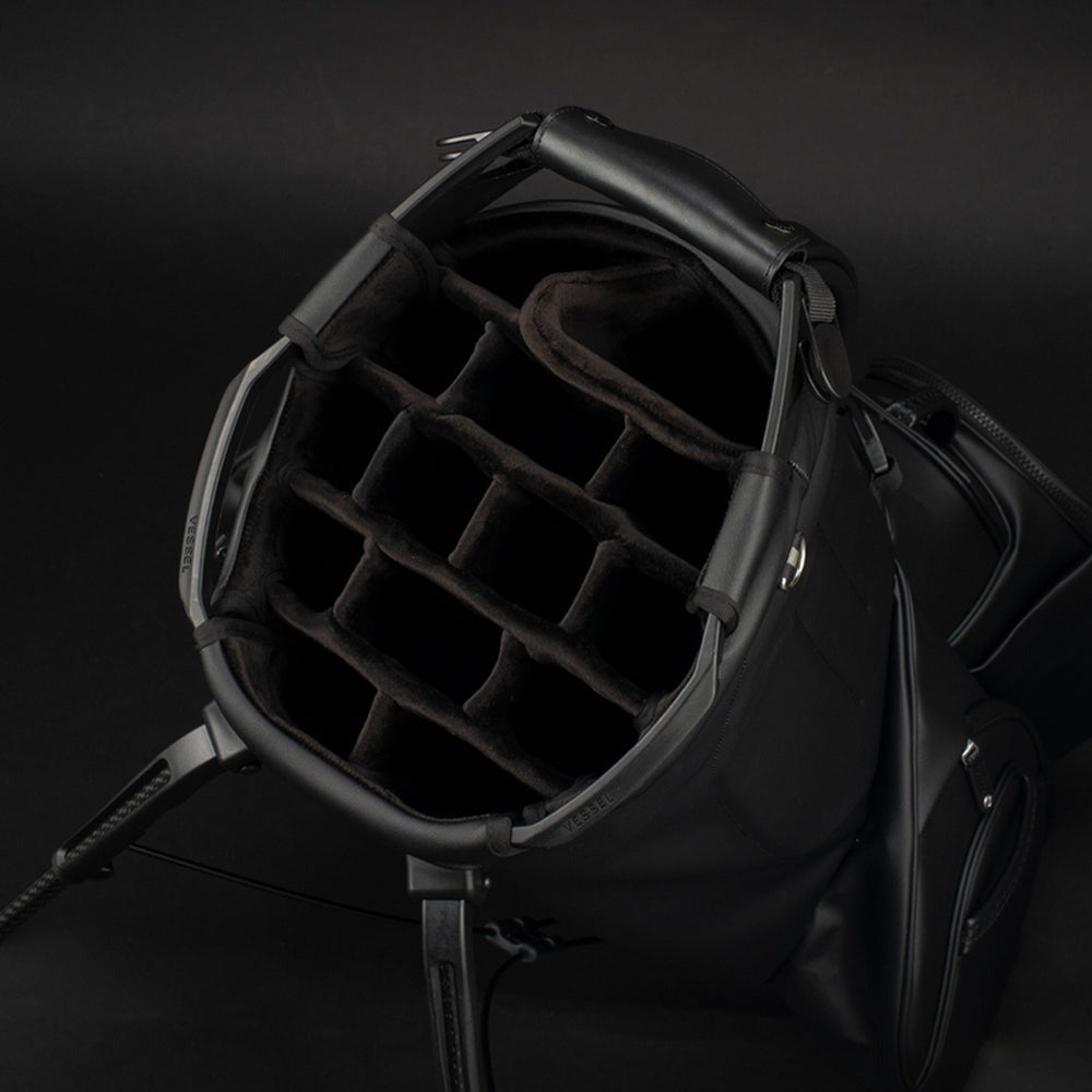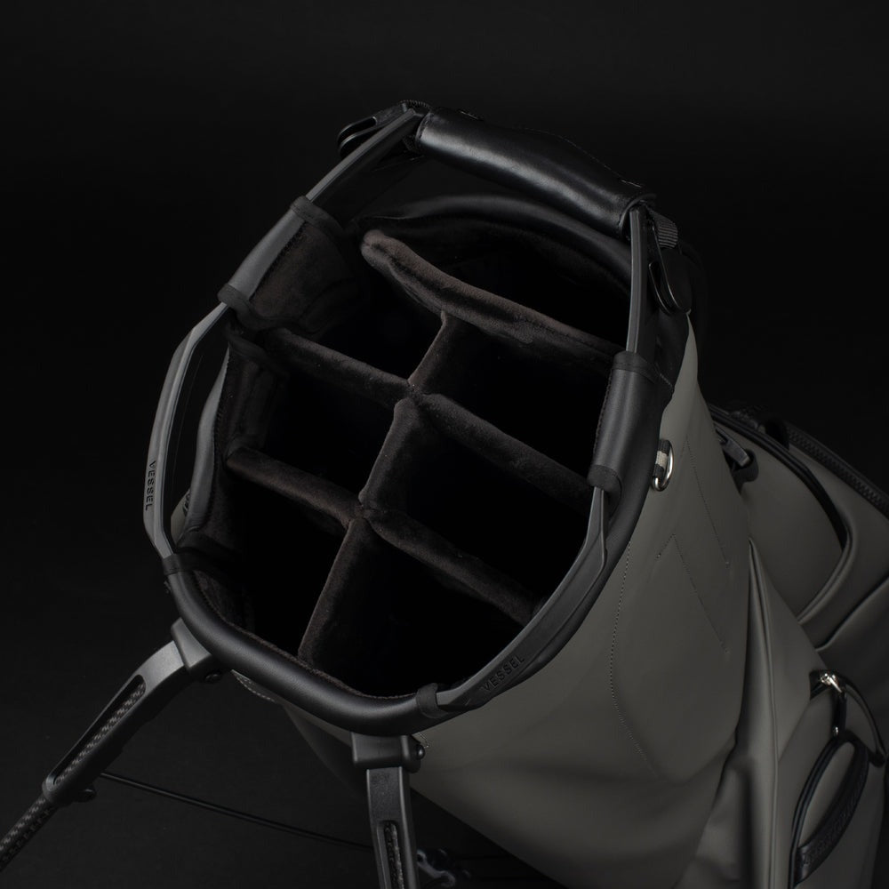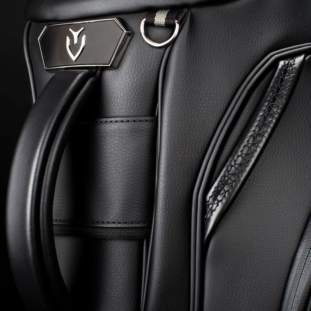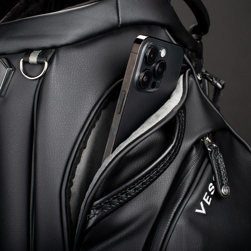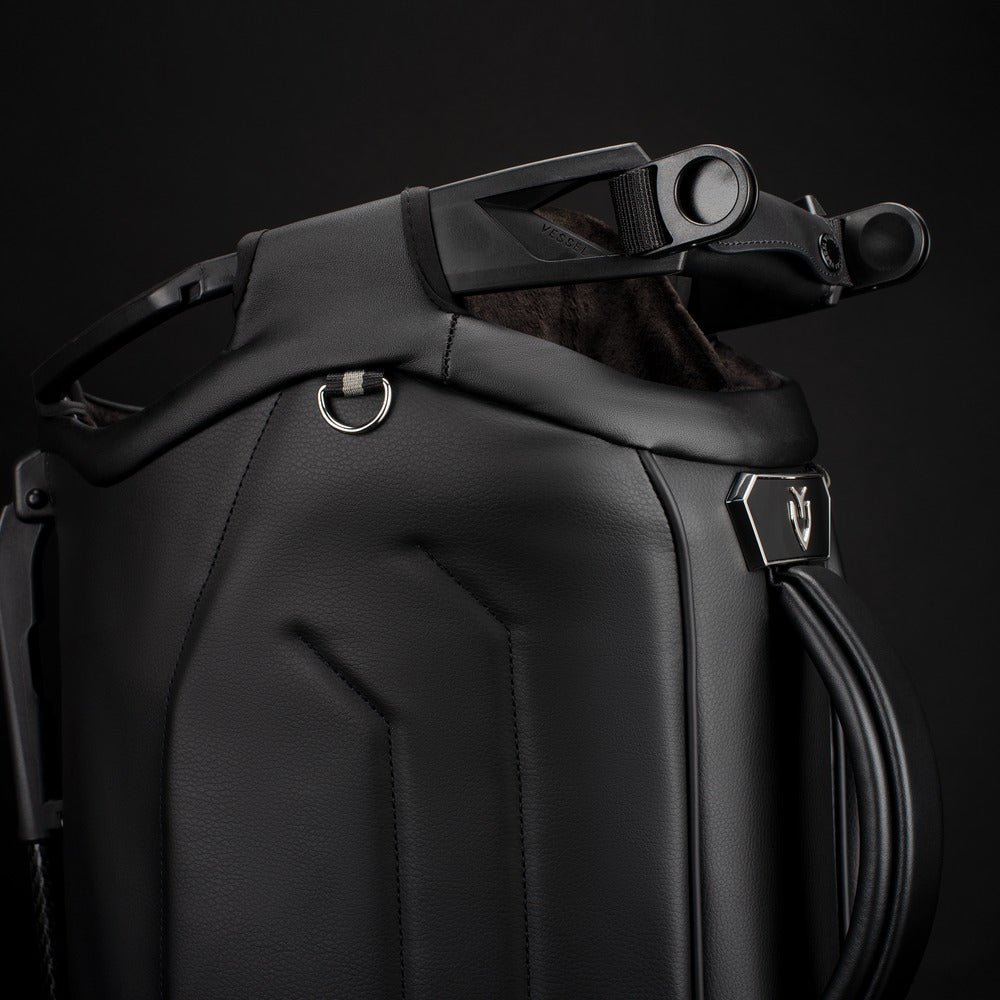 Experience the pinnacle of luxury performance with the Player V Pro. Meticulously crafted for the highest level of functionality and on-course convenience. The newly designed 7-and-14 way tops offer best in class club organization with dedicated putter storage and offset club dividers for optimal club viewing and retrieval. The Player V Pro utilizes VESSEL’s patented technologies (Equilibrium Double Strap and Rotator Base) for maximum balance and superior stability. Intentionally placed high strap-attachment points promote further balance and eliminate club fallout while the bag is being carried. A key feature is the cart strap pass-through for added protection when used on a cart or trolley. With too many fine details to name, you’ll be pleasantly surprised to discover that every detail, every element, of the Player V Pro is thoughtfully crafted for an uncompromised game.