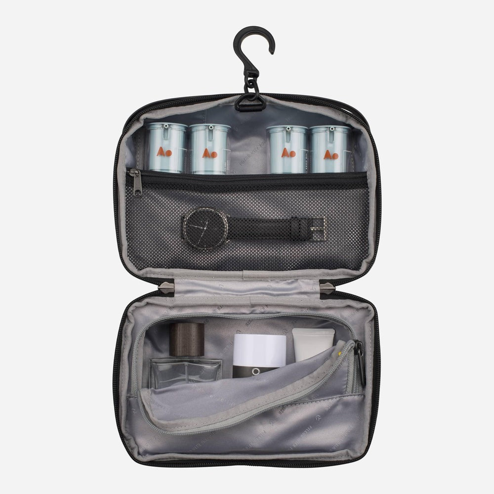 Be luxurious down to the finest details with the well-organized toiletry for smarter travel. Designed with a book style opening, the compact toiletry elegantly creates storage for all essentials with more than enough room. Hang the toiletry on any towel bar or hook for easy access.